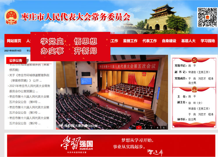 棗莊市人民代表大會是棗莊市的國家權力機關。 棗莊市人民代表大會每屆任期五年,每年至少舉行一次會議。會議由市人大常委會召集。經(jīng)過五分之一以上代表建議,可以臨時召集市人民代表大會會議。1960年,棗莊市人民代表大會建立,并召開了棗莊市第一屆人民代表大會第一次會議。 棗莊市人民代表大會行使下列職權:在本行政區(qū)域內,保證憲法、法律、行政法規(guī)和上級人民代表大會及其常委會決議的遵守和執(zhí)行,保證國家計劃和國家預算的執(zhí)行;審查和批準本市的國民經(jīng)濟和社會發(fā)展計劃、預算以及它們執(zhí)行情況的報告;討論、決定本市的政治、經(jīng)濟、教育、科學、文化、衛(wèi)生、環(huán)境和資源保護、民政、民族等工作的重大事項;選舉市人大常委會的組成人員;選舉市長、副市長;選舉市監(jiān)察委員會主任、市中級人民法院院長和人民檢察院檢察長。選出的市人民檢察院檢察長,須報經(jīng)省人民檢察院檢察長提請省人大常委會批準;選舉省人民代表大會代表;聽取和審查市人大常委會的工作報告;聽取和審查市人民政府、中級人民法院和人民檢察院的工作報告;改變或者撤銷市人大常委會的不適當?shù)臎Q議;撤銷市人民政府的不適當?shù)臎Q定和命令;保護社會主義的全民所有的財產(chǎn)和勞動群眾集體所有的財產(chǎn),保護公民私人所有的合法財產(chǎn),維護社會秩序,保障公民的人身權利、民主權利和其他權利;保護各種經(jīng)濟組織的合法權益;保障少數(shù)民族的權利;保障憲法和法律賦予婦女的男女平等、同工同酬和婚姻自由等各項權利。 棗莊市第十六屆人民代表大會代表共有394名。市十六屆人大一次會議于2017年2月19日至23日舉行,決定設立市第十六屆人民代表大會法制委員會、內務司法委員會、財政經(jīng)濟委員會、教育科學文化衛(wèi)生委員會、城鄉(xiāng)建設環(huán)境保護委員會、農(nóng)業(yè)與農(nóng)村委員會、民族僑務外事委員會。 棗莊市十六屆人大三次會議于2019年1月6日至9日舉行,決定增設棗莊市第十六屆人民代表大會社會建設委員會和更名棗莊市第十六屆人民代表大會內務司法委員會為棗莊市第十六屆人民代表大會監(jiān)察和司法委員會。 |