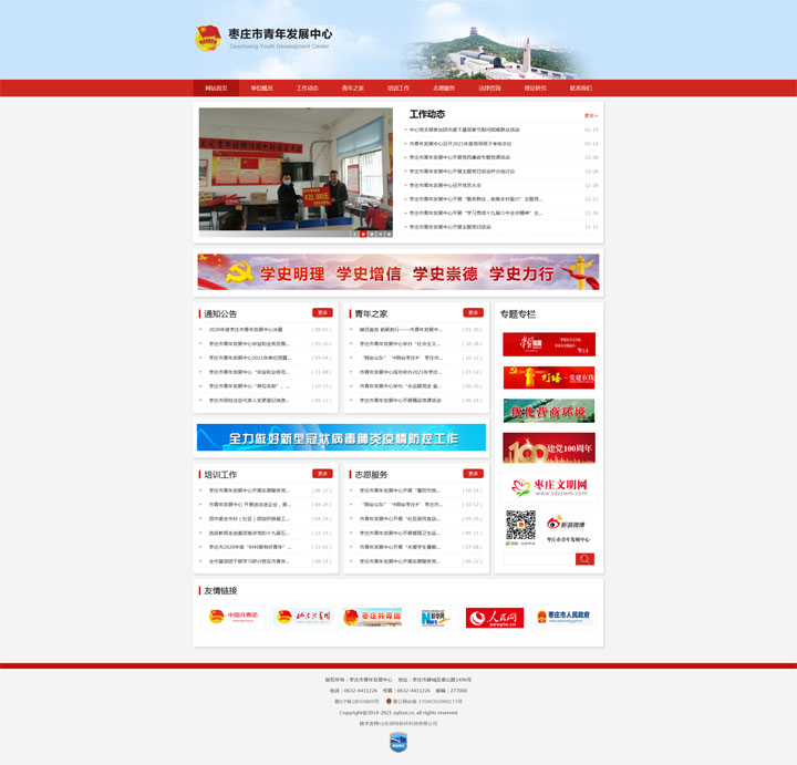 棗莊市青年發(fā)展中心的前身為棗莊市團校,成立于1981年,是一所以培養(yǎng)共青團干部和青年人才為主業(yè)的青年干部培訓學校。坐落于棗莊市薛城區(qū)泰山路,占地20余畝,建筑面積12000平方米。 建校以來,在上級黨團組織的關心和支持下,我們始終堅持正確的辦學方向,以培養(yǎng)具有較高理論素養(yǎng)和工作能力的青年人才為己任,銳意創(chuàng)新、積極進取,全面落實服務大局、服務社會、服務青少年的各項任務;緊密結合廣大團員青年的學習需求,不斷創(chuàng)新培訓模式,充分發(fā)揮陣地作用,創(chuàng)造性地組織開展了形式新穎、內容豐富的培訓活動;采取長短結合、內外結合、與經(jīng)濟發(fā)達地區(qū)聯(lián)合等多種形式,不斷拓寬辦學領域,擴大辦學規(guī)模,提高辦學質量,先后舉辦了職業(yè)中專班、軍地人才班和成人學歷班;不斷豐富工作內容,提升培訓質量,逐步形成了以團干部培訓為主,青少年研究、青少年素質拓展、青年志愿者培訓、成人學歷教育,“四位一體”的辦學格局。 2003年3月團市委在市團校設立“棗莊市青春創(chuàng)業(yè)指導中心”;2004年9月,棗莊電大市團校分校成立;2005年6月團市委在市團校設立全市首批“學士后流動站”;2010年初在北京大學的幫助與指導下,市團校成立了青少年素質拓展培訓基地。同時,市團校積極響應市委、市政府號召,圍繞中心、服務大局,充分發(fā)揮自身優(yōu)勢,配合市、區(qū)農業(yè)局、勞動局,先后承擔了農村勞動力轉移、“陽光工程”培訓班。 三十多年來,市團校完成了25000余名團干部和3000余名大中專學生的教學培訓任務,向蘇州、上海、煙臺等經(jīng)濟發(fā)達地區(qū)輸送高素質的青年勞務人員近1000人,累計培訓各類青年農民1500人次,開設中央電大“開放教育”本、專科專業(yè)20多個,學員近1000人,開展素質拓展培訓5000余人,成功舉辦兩屆全市青年攀巖比賽,受到了社會各界的一致好評。 2017年3月,棗莊市“青年之家”在市團校建成投入運行,設置法律維權、心理咨詢、婚戀交友、志愿服務、傳統(tǒng)文化教育和素質拓展六大模塊,是棗莊共青團面向社會、面向青少年的多功能、復合型、綜合性服務平臺,是團組織使用管理的公益性、綜合性服務場所。 2017年8月,棗莊市團校更名為棗莊市青年發(fā)展中心。展望未來,我們信心百倍,全體教職工將繼續(xù)圍繞黨政中心工作大局,以更加奮發(fā)有為的精神狀態(tài),開拓進取、奮力拼搏,立身自身實際,發(fā)揚優(yōu)良傳統(tǒng),在新的征程上邁出新步伐,再上工作新臺階,再創(chuàng)事業(yè)新輝煌。