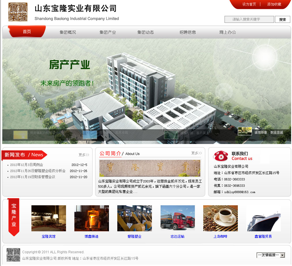 棗莊網(wǎng)站制作:山東寶隆實業(yè)有限公司成立于2003年,公司注冊資本金貳仟萬元,現(xiàn)有職工500余人。公司現(xiàn)擁有資產(chǎn)叁億余元,旗下涵蓋六個分公司。 公司總部位于山東省棗莊市工業(yè)園長江路15號,地處省級經(jīng)濟開發(fā)區(qū),南臨運河,北臨京福高速公路,西距京滬高鐵,距著名的旅游景區(qū)臺兒莊運河古城、微山湖濕地公園均40公里。地理位置優(yōu)越,交通便利,環(huán)境優(yōu)美。 公司是一家以銷售煤炭、石膏、水泥、熟料等建筑材料為主營業(yè)務(wù),以生產(chǎn)和經(jīng)營耐磨材料、塑編袋、物流運輸、化工原料、地熱材料為輔營業(yè)務(wù),同時經(jīng)營房地產(chǎn)行業(yè)的綜合性集團化私營企業(yè)。公司自成立以來,經(jīng)營業(yè)績穩(wěn)定提升,與中國聯(lián)合水泥集團有限公司(CUCC)、棗莊礦業(yè)集團等多家大型企業(yè)建立了長期穩(wěn)定的戰(zhàn)略合作伙伴關(guān)系。 寶隆實業(yè)始終秉承著“恪守誠信,追求卓越”的經(jīng)營理念,以“誠實守信、客戶至上”為營銷宗旨,遵循“平等互利、合作共贏”的原則;以“樹寶隆形象,創(chuàng)寶隆品牌”為目標,艱苦奮斗、務(wù)實創(chuàng)新,公司在激烈的市場競爭中表現(xiàn)出巨大的進取心,煥發(fā)出蓬勃生機,用誠信和實力創(chuàng)造寶隆曠世偉業(yè),這是寶隆人不懈的追求! 2011年,寶隆實業(yè)已走過九年的發(fā)展歷程,九年,在漫長的歷史長河中只是短暫的瞬間,但對于寶隆人來說,這是一段永載史冊、奮發(fā)有為、成就百年基業(yè)的創(chuàng)業(yè)歷程,寶隆人用青春、汗水、和智慧譜寫了一曲華彩樂章。九年的櫛風沐雨,九年春華秋實;九載磨礪拼搏,九載碩果累。九年的堅守、堅韌、堅持,所有的積累,所有的沉淀,讓寶隆實業(yè)增強了實力和能力,讓寶隆人增添了勇氣和底氣,寶隆實業(yè)在激烈的市場競爭中敢于亮劍,敢于向世界一流巔峰企業(yè)發(fā)起挑戰(zhàn),這是全體寶隆人時刻保持著的、永遠都不可磨滅的寶隆意志。 今天,寶隆人在此收拾好往日的榮耀。明天,寶隆人又將迎著朝陽,帶著堅毅的目光,踏上任重道遠的征程,朝著下一個光輝楊帆遠航…… |