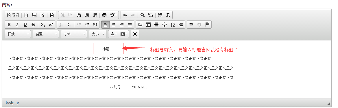5、 輸入正文 標題要輸入(如果不輸入標題省網(wǎng)就沒有標題了。)
